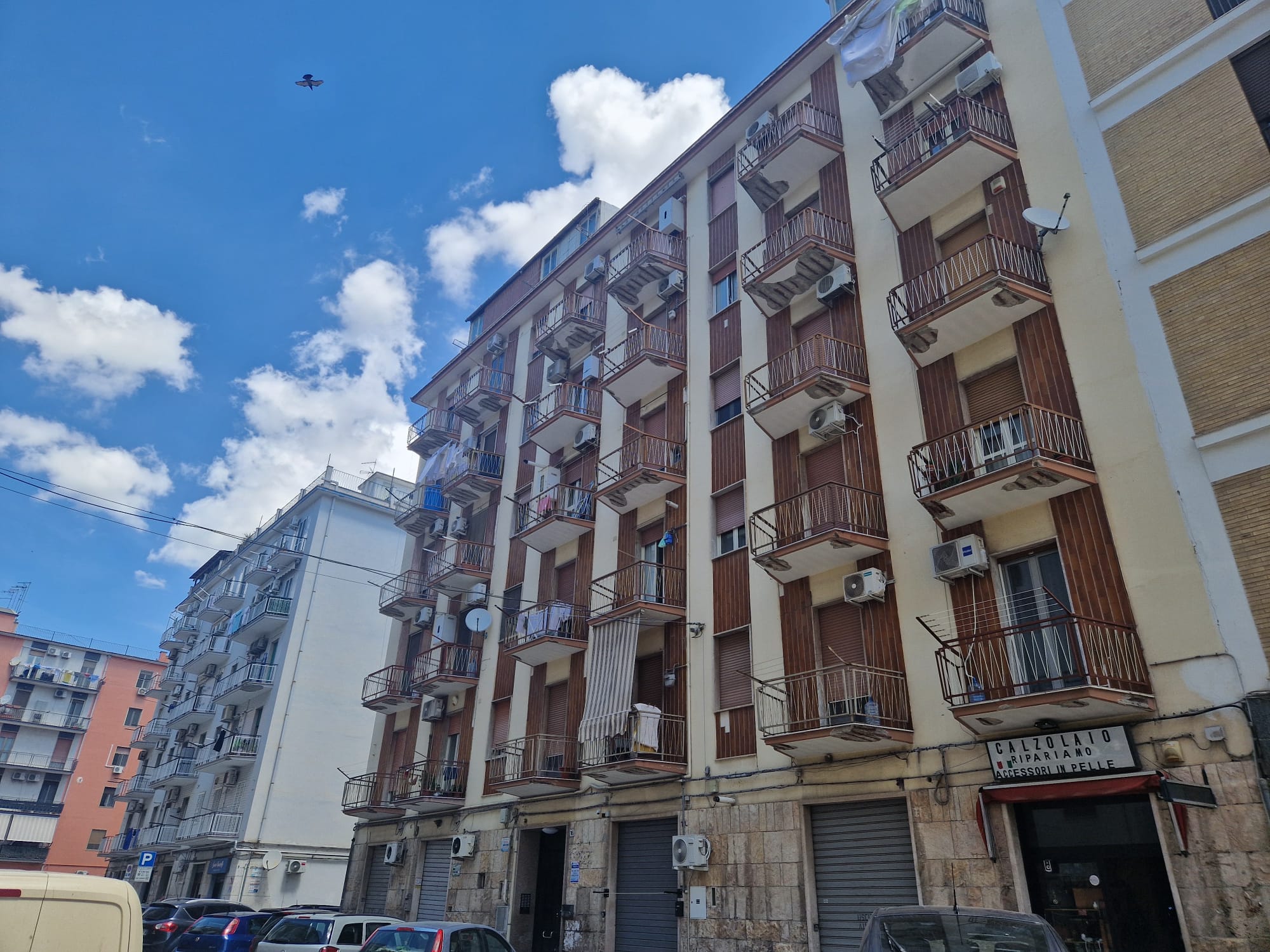 Zona Via Vittime Civili – Via Crostarosa : Soluzione posta al primo piano di uno stabile con ascensore, composta da ingresso, soggiorno, cucina abitabile, camera da letto, bagno e ripostiglio. La pavimentazione è in marmo, gli infissi in ferro, l’impianto idrico ed elettrico in discreto stato, impianto di riscaldamento autonomo, climatizzato nel soggiorno. Esposizione unica su via Crostarosa con tre balconi. Lavori di facciata già deliberati e quindi a carico del venditore . Lo stabile sorge in una zona centrale con tutti i servizi a portata di mano.