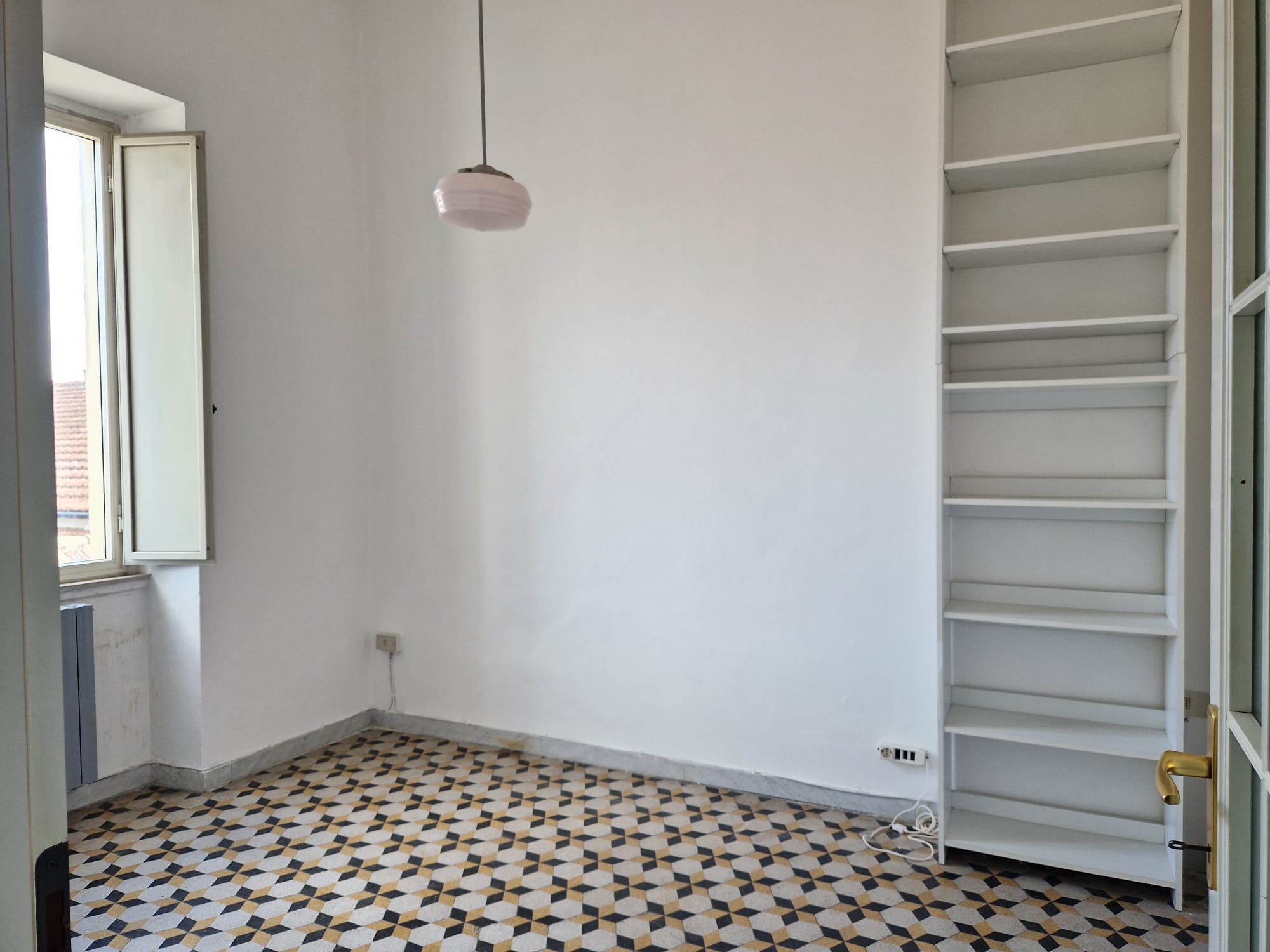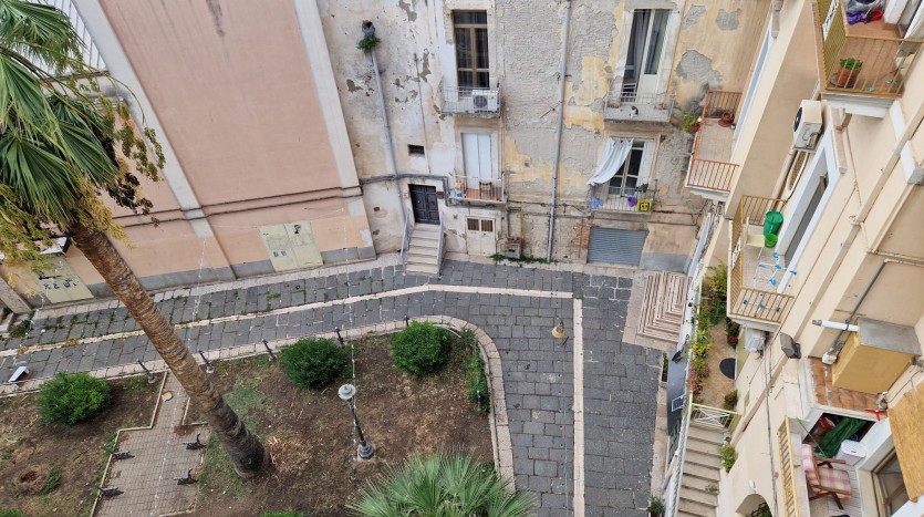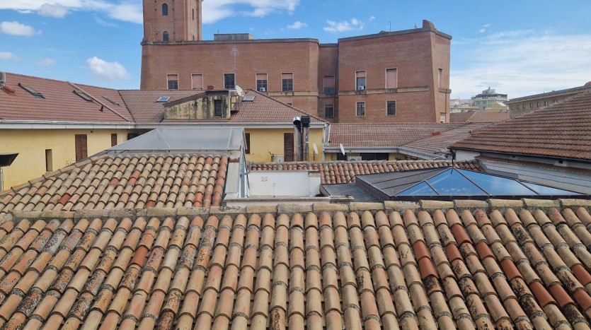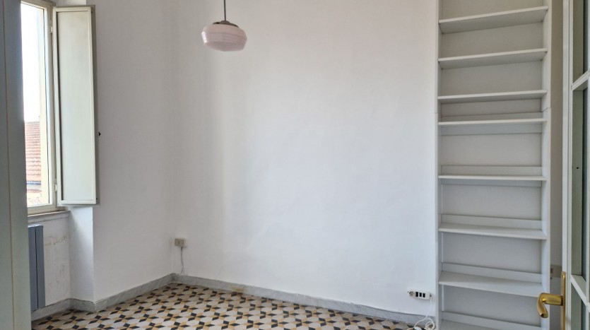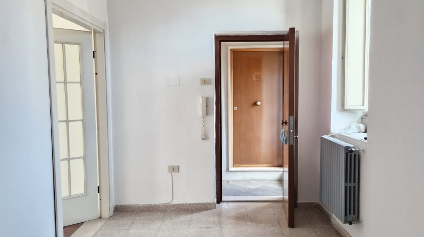 Zona Centro – Piazza de Carolis : Ampia soluzione posta al terzo piano di uno stabile senza ascensore, con doppio ingresso sullo stesso pianerottolo, composta da soggiorno, cucinino, camera da letto, camera e bagno. Pavimentazione in ceramica, infissi in anticorodal, porte in legno con vetro laccate bianche, impianto idrico ed elettrico in buono stato, impianto di riscaldamento autonomo , doppia esposizione con affaccio su Piazza de Carolis con tre balconi e un terrazzino di proprietà al quale si accede tramite una scala interna all\\\\\\\’appartamento.