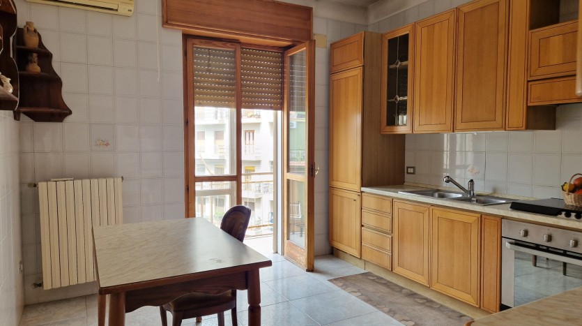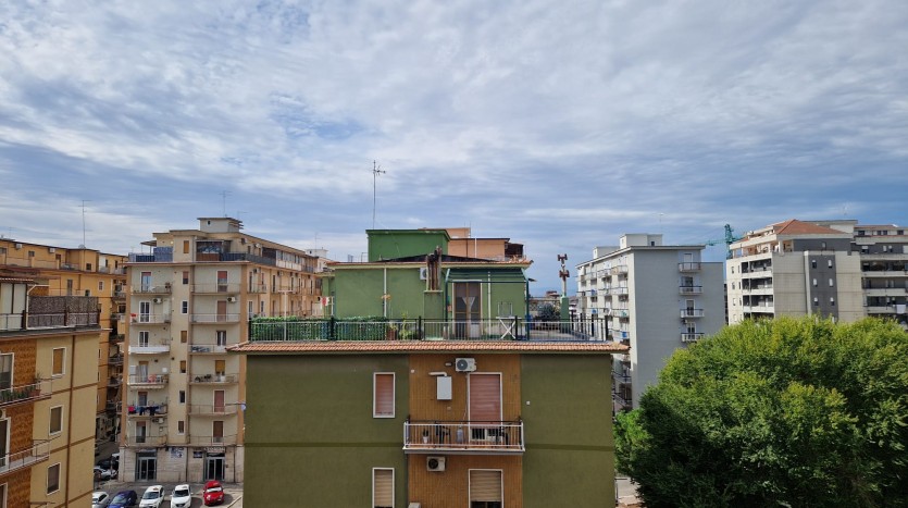 Zona San Ciro – Via Tibollo : In una zona con ampi parcheggi molto vicina al centro città , disponiamo di una soluzione posta al quinto piano di uno stabile dotato di ascensore , composta da ingresso, soggiorno, cucina abitabile, camera da letto, camera, bagno e ripostiglio. La pavimentazione è in ceramica, gli infissi in legno con vetrocamera , doppi infissi in anticorodal esterni, impianto idrico ed elettrico in discreto stato, impianto di riscaldamento autonomo, porta d’ingresso blindata, porte in legno laccate bianche, climatizzato nella camera da letto e nella cucina. Unica esposizione con un balcone che abbraccia tutto un lato dell’appartamento.