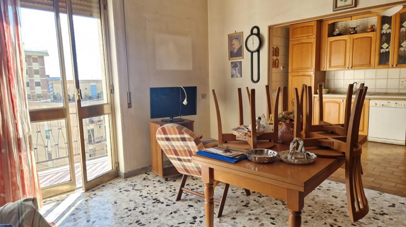 Zona San Ciro – Via G. Salvemini : Proponiamo in vendita in una zona molto servita con il centro città facilmente raggiungibile a piedi, una soluzione di ampia metratura posta al piano sesto di uno stabile con ascensore, composta da ingresso salone, cucina abitabile, camera da letto, due ampie camere, bagno e ripostiglio. La pavimentazione è in marmo e ceramica nella cucina, infissi in anticorodal, le porte in legno con vetro, l’impianto idrico ed elettrico in buono stato , riscaldamento autonomo, porta d’ingresso blindata, climatizzato nella camera e nella cucina. Tripla esposizione con un ampio terrazzino che affaccia su via Salvemini e due balconi che affacciano nel cortile interno.