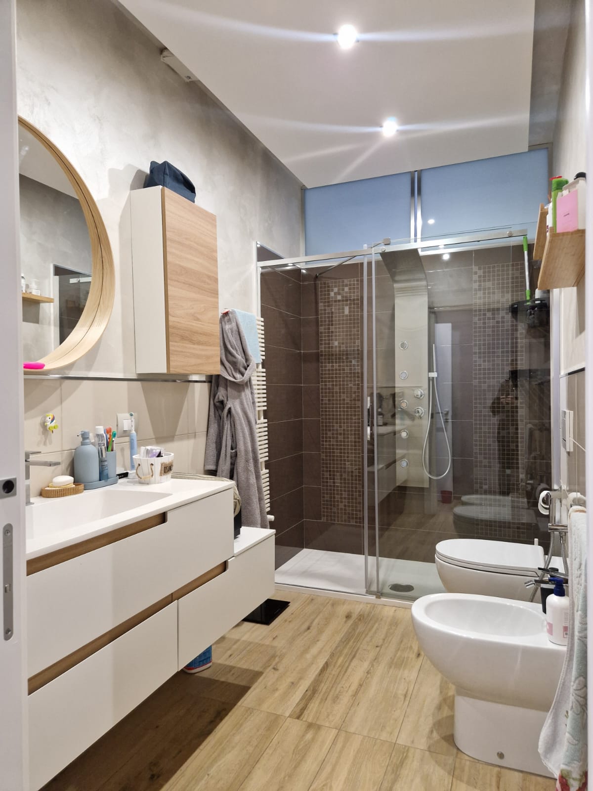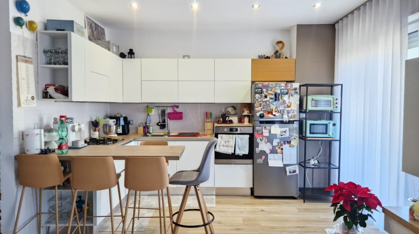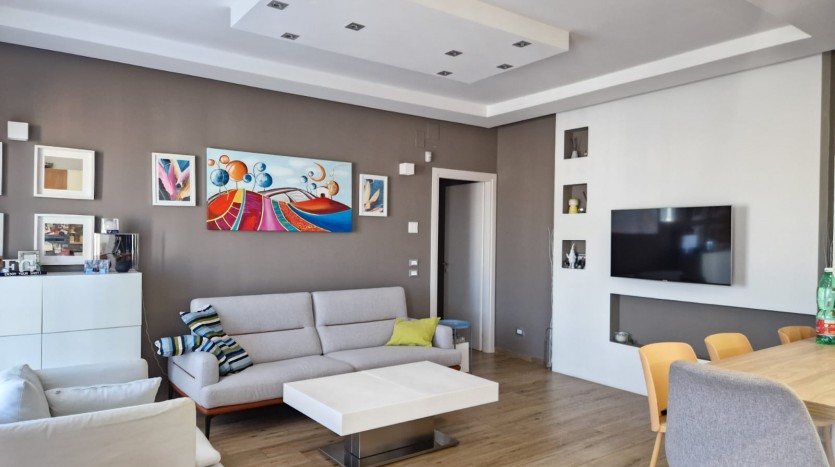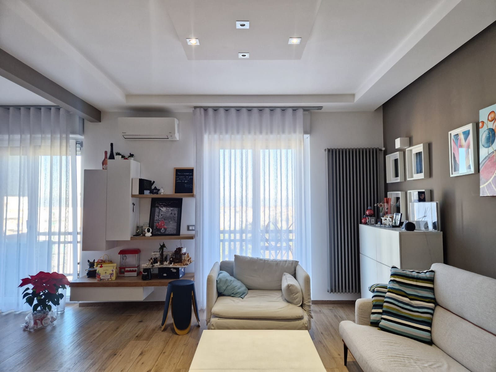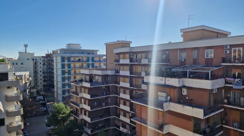 Zona Distretto Militare – Via Evemero Nardella: In una zona servitissima, con il centro della città facilmente raggiungibile a piedi, disponiamo di una soluzione composta da ingresso, ampio salone con angolo cottura, zona notte composta da camera da letto, camera, due bagni e ripostiglio. Totalmente ristrutturata nel 2017, con impianto idrico ed elettrico a norma , impianto di riscaldamento autonomo, climatizzato nel salone , camera da letto e camera, impianto di antifurto, pavimento in gres porcellanato effetto legno, porte in legno laccate bianche, porta d\\\’ingresso blindata, infissi in PVC con vetrocamera, abbassamenti di soffitto, videocitofono, doppia esposizione con due balconi e un terrazzino che si può attrezzare con tavolo e sedie. Molto luminoso grazie al piano alto . Completa la soluzione un box opzionale di circa 24 mq. A €. 27.000.